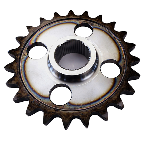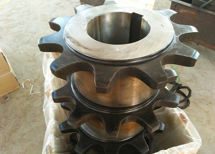 5. دنده زنجیر دو ردیفه (Double-Row Sprockets): این نوع چرخ دنده ها دارای دو ردیف دندانه هستند که به دو زنجیر متصل می شوند و برای بارهای سنگین و انتقال قدرت بیشتر مناسب هستند.