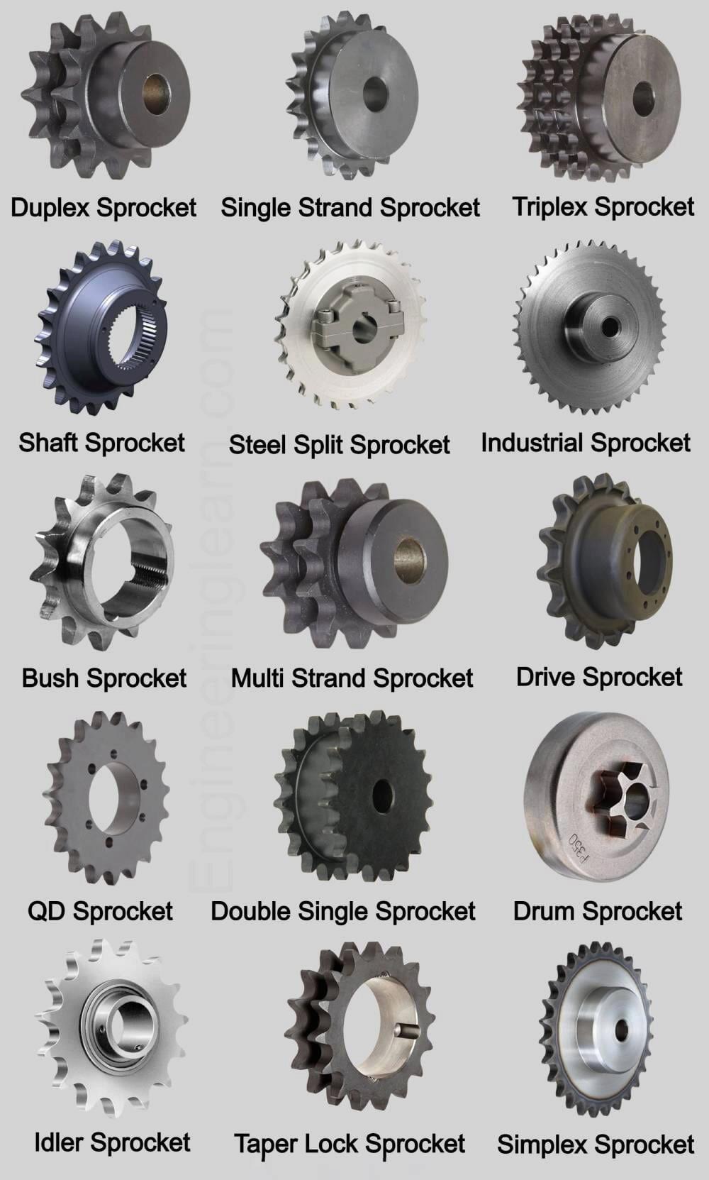 1. دنده زنجیر تکی (Single Strand Sprockets): در این نوع چرخ دنده ها زنجیر فقط به یک دنده متصل می شود و در صورت نیاز به تغییر نسبت چرخش، انتخاب اندازه چرخ دنده تغییر می کند.